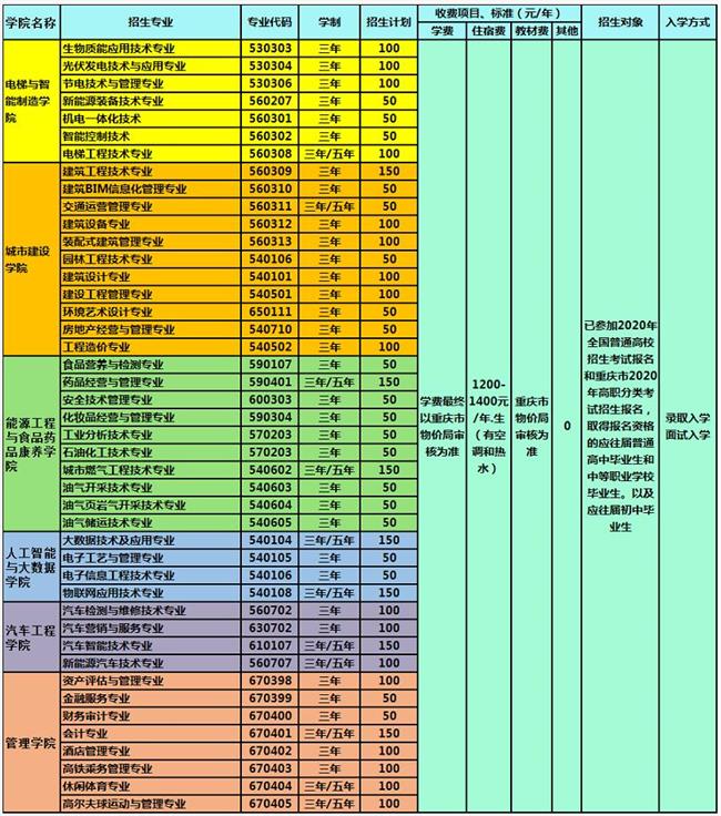 1)招生对象:已参加2020年全国普通高校招生考试报名和重庆市2020年高职分类考试招生报名,取得报名资格的应往届普通高中毕业生和中等职业学校毕业生。以及应往届初中毕业生
